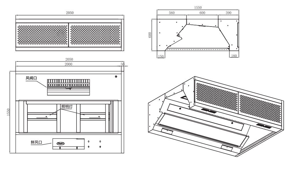 L*1550*600 | 800*300 | 600*200 | 220V/50Hz | 0.6 | 上出口 |